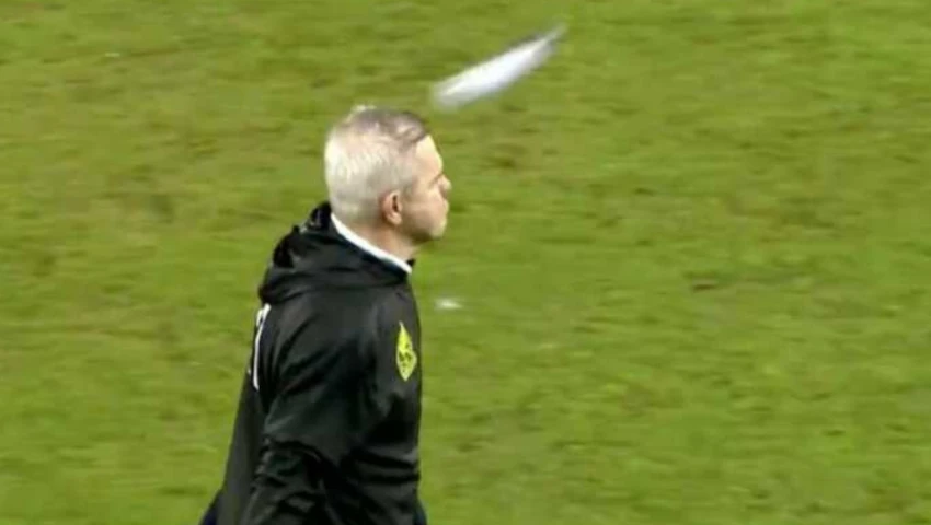 Entre insultos y gritos, un aficionado hondureño lanzó un envase a la cabeza del DT de México. En un video, puede apreciarse el momento exacto en que la lata —aparentemente llena— golpea la cabeza del entrenador, quien rápidamente se acerca a personal en el campo de juego, mientras su cabeza comienza a sangrar en el acto.