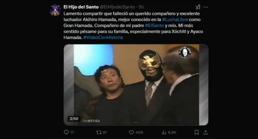 "Lamento compartir que falleció un querido compañero y excelente luchador, Akihiro Hamada, mejor conocido en la lucha libre como Gran Hamada. Compañero de mi padre El Santo y mío" escribió el hijo de El Santo en su publicación.