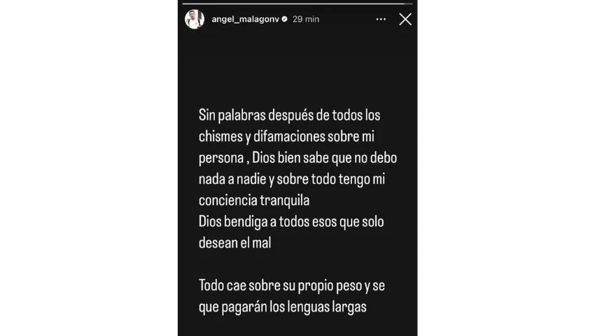 “Sin palabras después de todos los chismes y difamaciones sobre mi persona. Dios bien sabe que no debo nada a nadie y, sobre todo, tengo mi conciencia tranquila. Dios bendiga a todos esos que solo desean el mal. Todo cae por su propio peso y sé que pagarán los lenguas largas”.