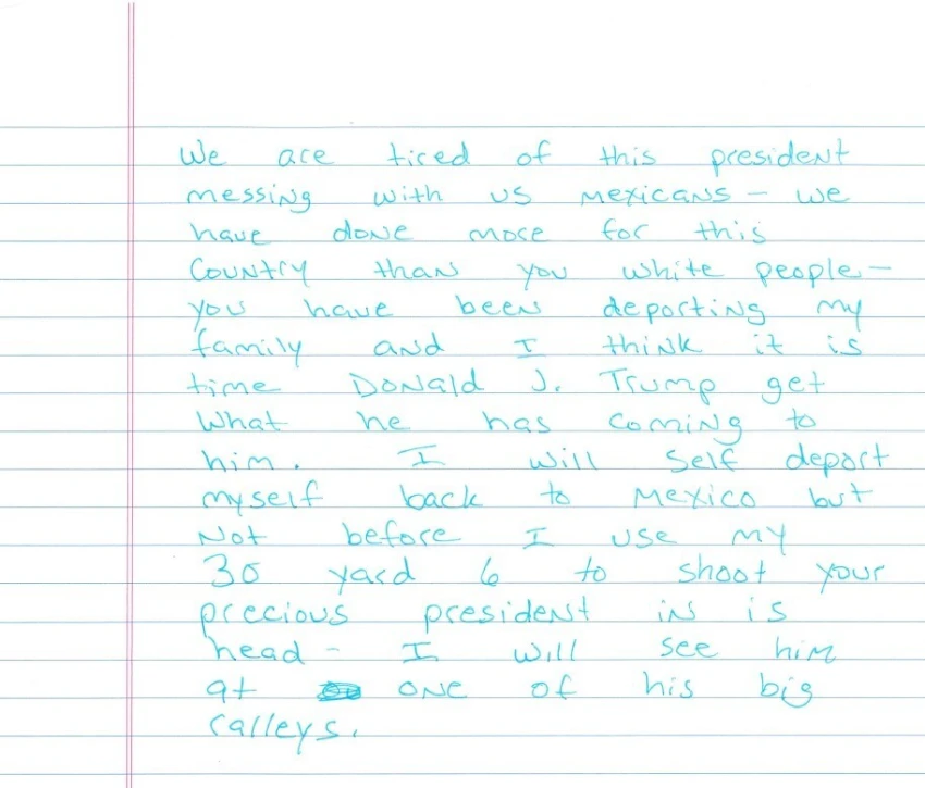 El hombre envió una carta manifestando su deseo de deportarse a México, pero antes asesinar al presidente