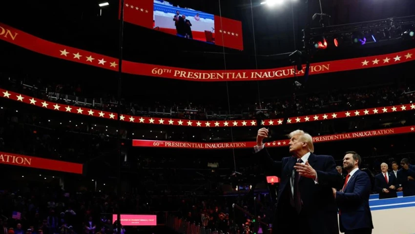 El presidente estadounidense Donald Trump quiso dar su sello a su gran día, pues tras la ceremonia de investidura realizada en el Capitolio en Washington DC, se reunió con simpatizantes en la Capital One Arena, a donde entró haciendo sus característicos pasos de baile. Tras dar un discurso en el que repitió que devolverá la “grandeza” a Estados Unidos, firmó nueve órdenes ejecutivas enfrente a sus seguidores, las cuales las mostraba y luego de hacerlo les lanzaba las plumas con las que rubricó.