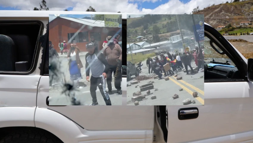 Al pasar cerca de ellos, de pronto varias personas armadas con grandes piedras arremetieron contra la camioneta buscando golpear a los ocupantes que quedaron resguardados dentro de las camionetas blindadas.