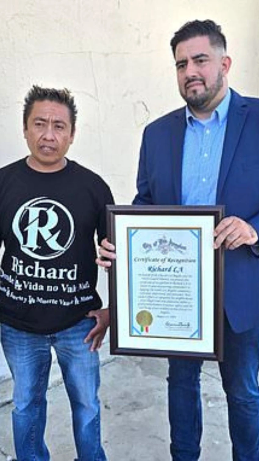 Recientemente, incluso, fue reconocido por el concejal de Los Ángeles Curren Price, a través de su equipo de gabinete, por sus “incansables esfuerzos para proteger a los vecindarios de las redadas migratorias”.