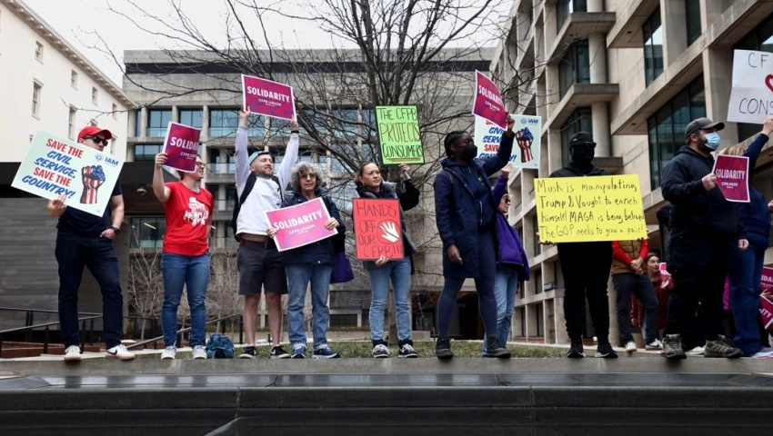 Pese a la lluvia caída hoy en la capital estadounidense, decenas de personas se congregaron en varias salidas de la sede de la agencia con carteles en los que se agradecía la labor de sus integrantes y se criticaba a Trump y a Musk.