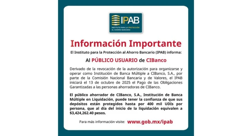 Adiós a CIBanco, IPAB comienza liquidación: qué pasará con tus depósitos y cómo recuperarlos