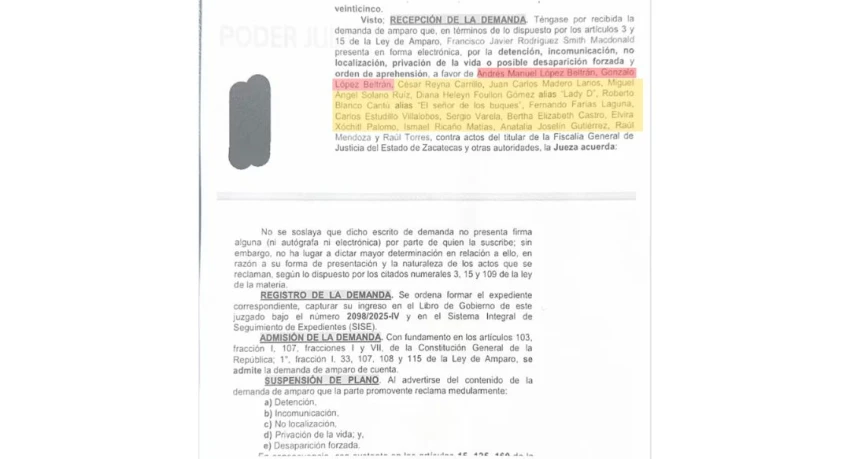 Andrés Manuel López Beltrán, mejor conocido como “Andy”, hijo del expresidente Andrés Manuel López Obrador (AMLO) y actual secretario de Organización de Morena, promovió un amparo para evitar cualquier orden de detención, incomunicación o desaparición forzada. La medida fue admitida en un juzgado federal y hoy se ha convertido en un escudo legal para él y su hermano Gonzalo “Bobby” López Beltrán.
