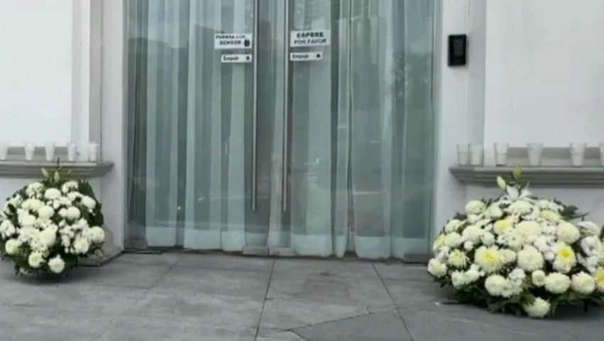 En Guadalajara, el salón está dividido en áreas que evocan modernidad y sofisticación. Actualmente opera con extrema discreción: puertas cerradas, cortinas bajadas, flores en la puerta, veladoras y un moño negro en señal de luto.