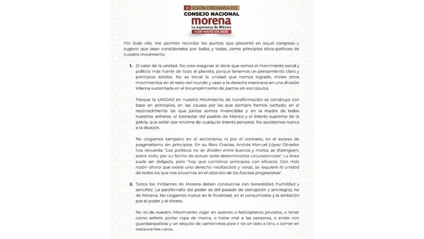 El uso de un jet privado contradice el decálogo de austeridad emitido por Morena en octubre de 2024, cuyo punto número 10 afirma:
