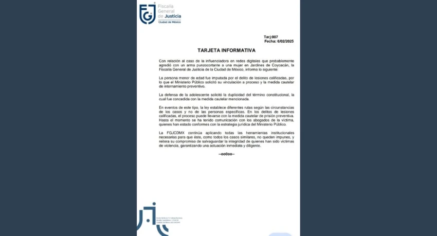 La presunta agresora, la influencer Marianne “N”, de 17 años, fue trasladada al Centro Especializado para Mujeres Adolescentes, en la alcaldía Tlalpan, luego de que un juez le negara la posibilidad de enfrentar su proceso en libertad. Su situación legal se definirá en los próximos días, cuando se determine si es vinculada a proceso.