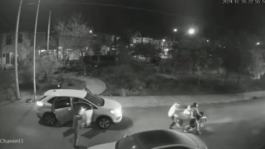 Todo sucedió en el momento en que los motociclistas llegaron a hacer una entrega a una vivienda de la zona. Justo cuando uno de los repartidores, quien parece ser una mujer, sube nuevamente a la motocicleta, el primer vehículo se acerca a ambos. Al percatarse de la situación, intentan huir en su medio de transporte.