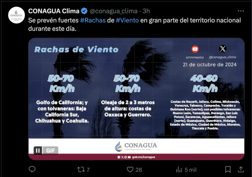 — CONAGUA Clima (@conagua_clima) October 21, 2024