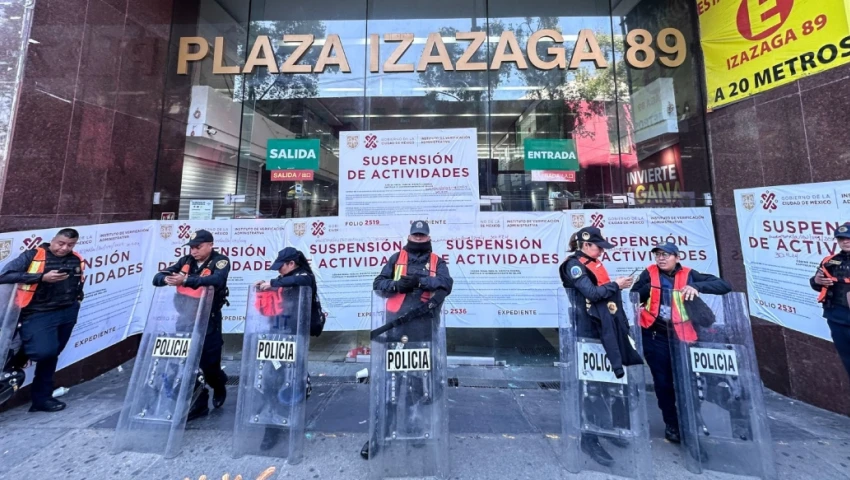 Desalojan plaza Izazaga 89
