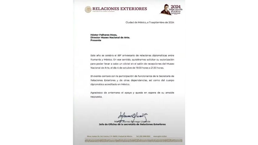 Según el documento, Borrego presentó la petición bajo el argumento de organizar un evento diplomático entre México y Rumania, pero el 4 de octubre se llevó a cabo una recepción nupcial para él y su esposo, Ionu Vâlcu, jefe de misión adjunto de la embajada de Rumania en México.