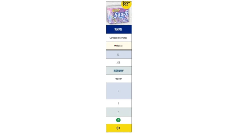 Según lo arrojado por el estudio de Profeco, uno de los productos de papel de baño que mejores resultados presentaron fue el Suavel campos de lavanda, que cuenta con un gramaje de 31.25 g/m2, tiene un grosor regular, una rapidez en la desintegración calificada como excelente, su resistencia de hojas también es excelente, en general, este artículo fue calificado como excelente.