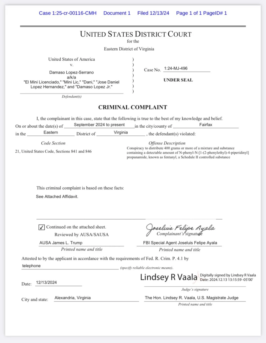 El hijo de Dámaso López Núñez, “El Licenciado”, exlíder del Cártel de Sinaloa y estrecho colaborador de Joaquín “El Chapo” Guzmán, acudió a la audiencia ante el juez Claude M. Hilton en la Corte del Condado de Alexandria, donde su caso fue tratado en una audiencia sellada, sin acceso para medios ni público.
