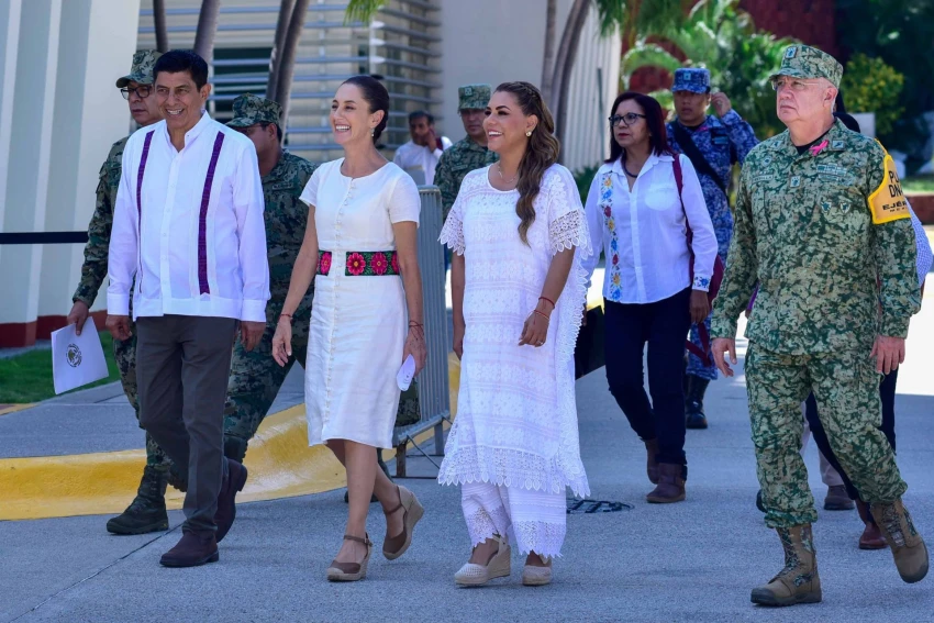 Tras recorrer las calles de Acapulco, uno de los sitios turísticos más importantes del país, la presidenta dio una conferencia de prensa, en la cual estuvo acompañada de la gobernadora de Guerrero, Evelyn Salgado; el gobernador de Oaxaca, Salomón Jara; la alcaldesa de Acapulco, Abelina López; la secretaria de Gobernación, Rosa Icela Rodríguez; el secretario de Defensa Nacional, Ricardo Trevilla; y otros miembros del gabinete.