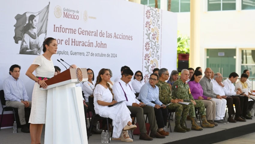 Cuando la presidenta Claudia Sheinbaum Pardo llegó al poder, el huracán John había azotado dos veces el sur de México, afectando principalmente los estados de Guerrero y Oaxaca, este domingo 27 de octubre, un mes después del paso del fenómeno meteorológico, la mandataria visitó el puerto de Acapulco para supervisar las acciones que se han realizado en las entidades para su reconstrucción y ayuda a la población.