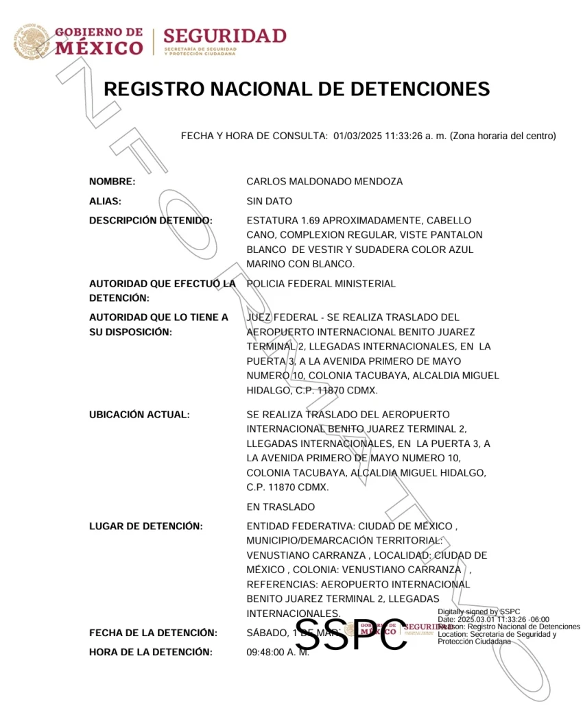 El arresto de Maldonado en Estados Unidos ocurrió a solicitud del gobierno de México