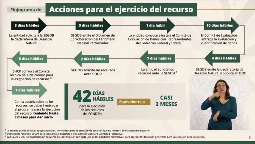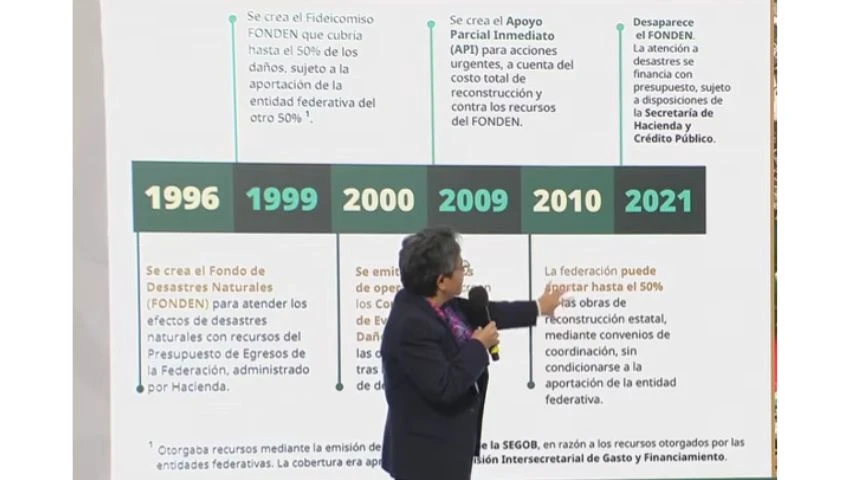 Buenrostro explicó que en 1999 el Fonden se constituyó como un fideicomiso administrado por la Secretaría de Hacienda, con reglas que exigían que los estados o municipios aportaran parte de los recursos para poder acceder a la ayuda federal. Esto, dijo, generaba retrasos que podían extenderse hasta por 120 días después de ocurrido un desastre.