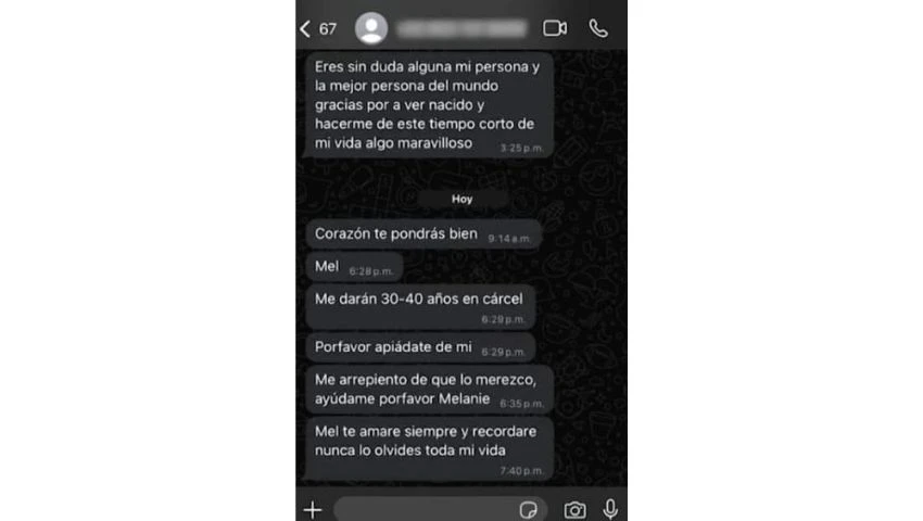 Después de la agresión, mientras Melanie estaba hospitalizada, Christian le envió mensajes pidiendo perdón y suplicando que lo apoyara para evitar ir a prisión. En uno de los textos, el agresor escribió: