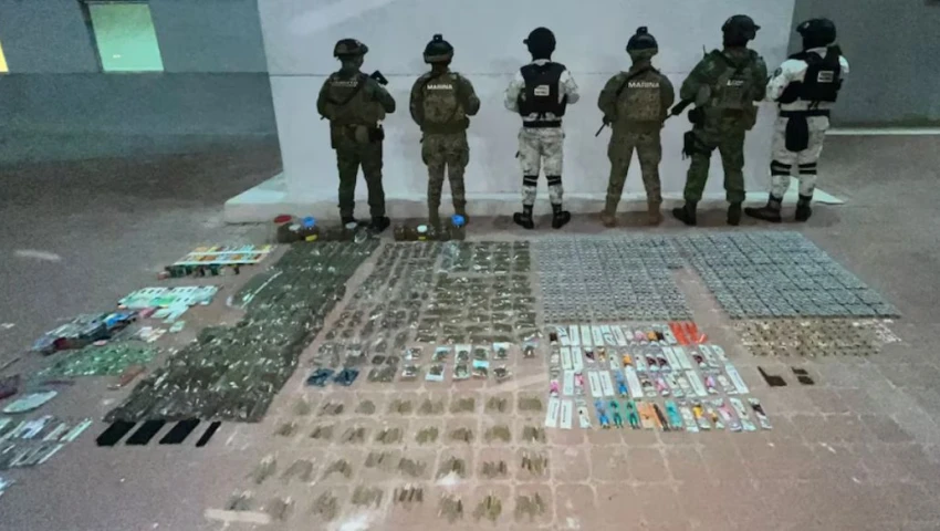 En el poblado Los Cedros, municipio de Choix, fue desmantelado un laboratorio clandestino de 4,000 m² destinado a la elaboración de drogas sintéticas. Las autoridades decomisaron: