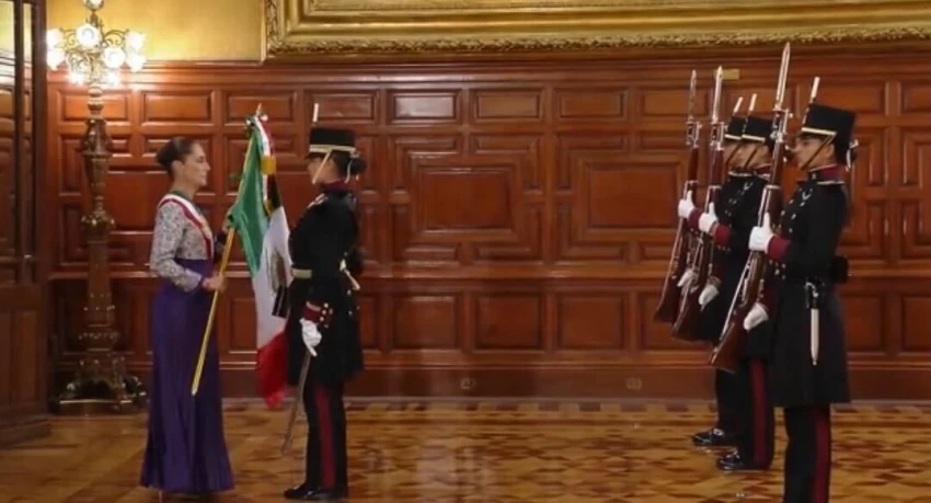 En un acto histórico, una escolta conformada únicamente por mujeres entregó a la presidenta de México uno de los máximos lábaros patrios: la bandera de México.