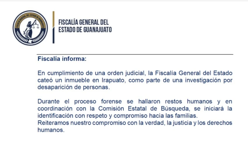 En su comunicado, la Fiscalía reiteró su compromiso con la búsqueda de la verdad, la justicia y el respeto a los derechos humanos. Además, enfatizó que continuará trabajando en coordinación con otras dependencias y colectivos de búsqueda para avanzar en la identificación de los restos.