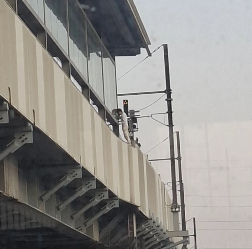 En el video difundido en las redes sociales se ve cuando el joven estaba colocado en la cornisa de la pared de la estación del tramo elevado de la Línea Dorada, ubicada sobre la avenida Tláhuac y Anillo Periférico Canala de Garay.
