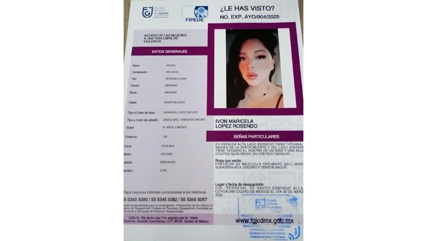 La búsqueda de Ivón Maricela López Rosendo, una mujer de 31 años desaparecida desde el 30 de marzo de 2025 en Coyoacán, Ciudad de México (CDMX), ha llegado a un trágico desenlace este 3 de abril. Su cuerpo sin vida fue hallado en Jojutla, Morelos, dejando un pequeño hijo de siete años en la orfandad y a una familia destrozada, clamando por justicia.