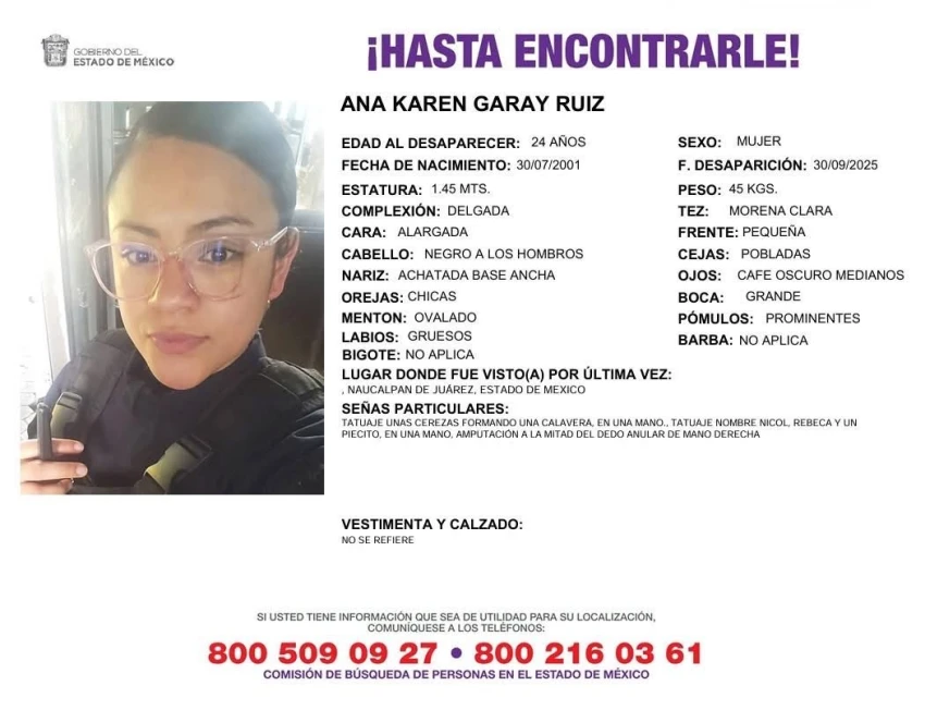 30 de septiembre: se pierde el rastro de Ana Karen Garay Ruiz, de 24 años.