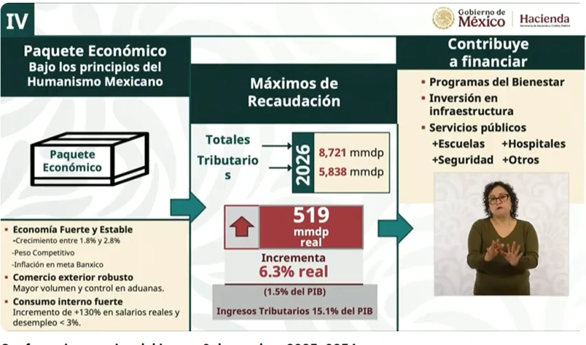 Para 2026 se espera un aumento de 490,000 mdp, de ingresos adicionales, que irán a programas de bienestar, infraestructura, salud y vivienda.