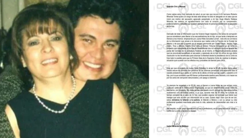 En su carta, Miranda de Wallace cuestiona a los ministros de la Corte por considerar que “votan por consigna” en temas de alto impacto. Asegura que entregó evidencias al Poder Judicial y mantuvo diálogo con sus asesores, pero lamentó que la Primera Sala atrajera el amparo que terminó por favorecer a González Lomelí.