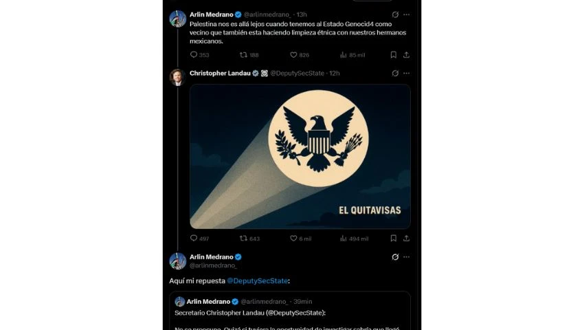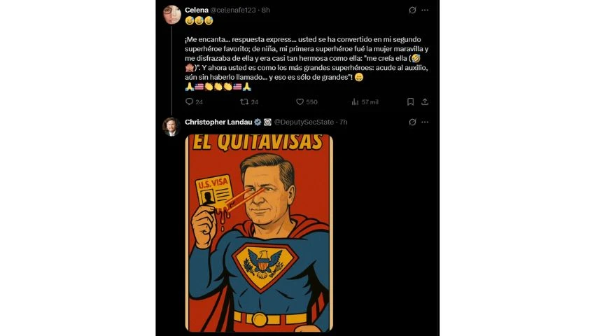 El gesto humanitario pronto derivó en una campaña de desprestigio. Desde Washington, Christopher Landau —ahora alto funcionario del Departamento de Estado— respondió un mensaje de Medrano donde ella criticaba la política exterior de Estados Unidos, calificándola de “Estado genocida” por su papel en Medio Oriente y su trato hacia los migrantes latinoamericanos.