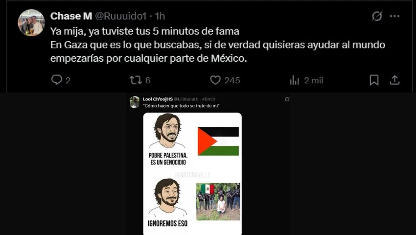 Numerosas cuentas la atacaron por “priorizar Palestina” sobre tragedias nacionales como las inundaciones en Veracruz, llamándola “propagandista” y “antipatriota”. Otros, en cambio, la defendieron como una voz crítica frente a la violencia estructural y el racismo institucional.