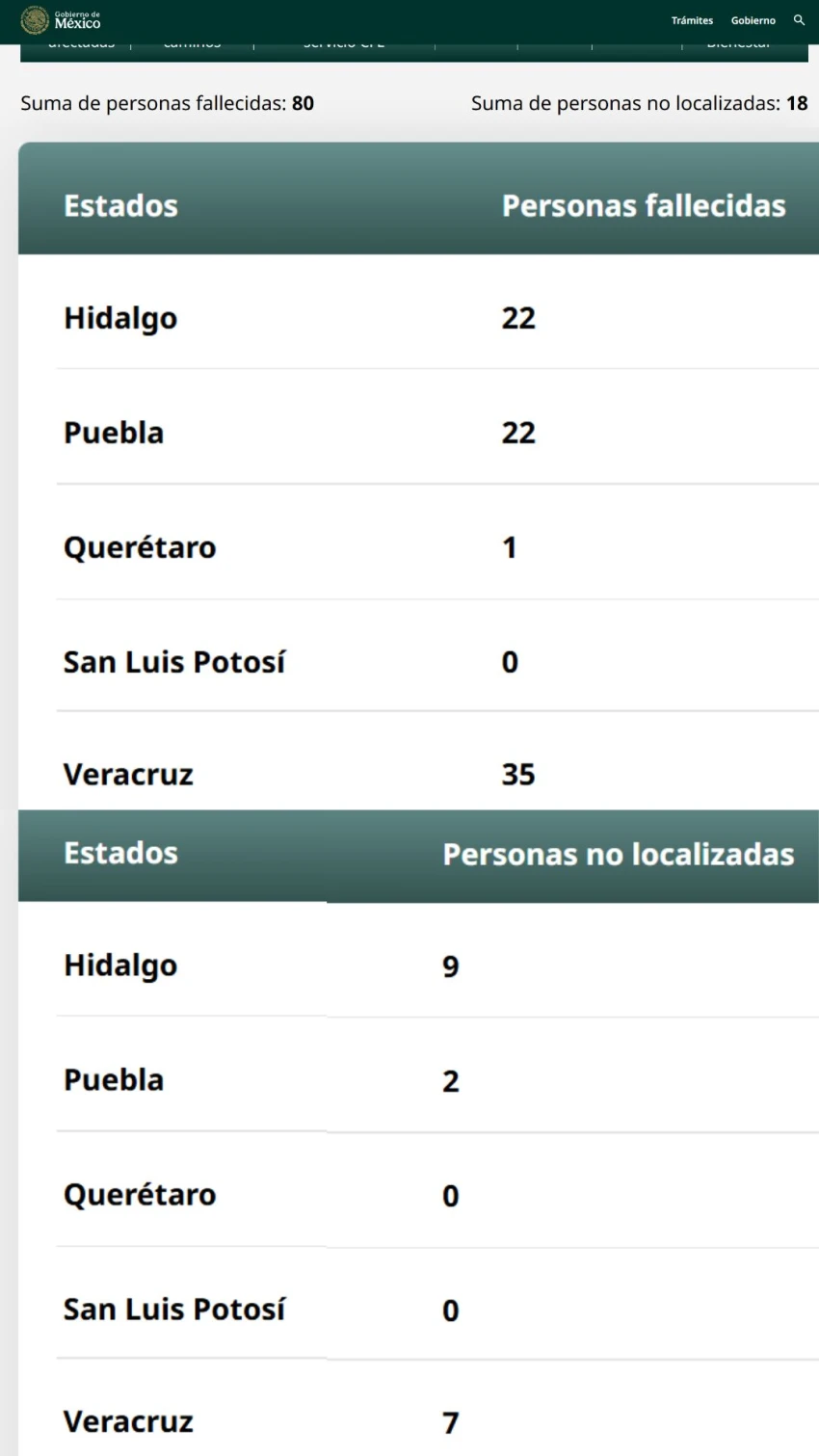 Hidalgo: 22 personas fallecidas y 9 no localizadas.