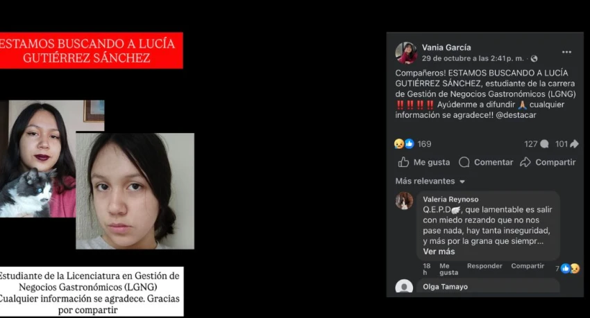 El 28 de octubre fue el último día que se tuvo contacto con Lucía Gutiérrez Sánchez, estudiante de Gestión de Negocios Gastronómicos en la Universidad de Guadalajara (UdeG). Tras ser reportada como desaparecida, su familia y amigos iniciaron una intensa búsqueda a través de redes sociales.