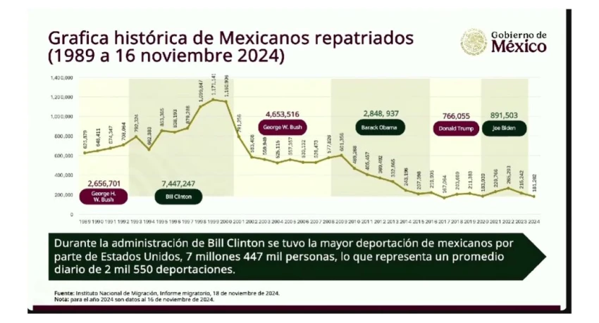 Sheinbaum presentó una grafica de los presidentes de EE.UU. y el número de mexicanos repatriados.