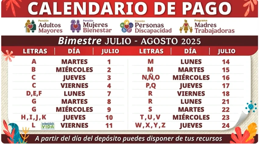 Anunció el calendario de los pagos de la Pensiones de Bienestar que arrancan este martes 1 de julio y concluyen el jueves 24.