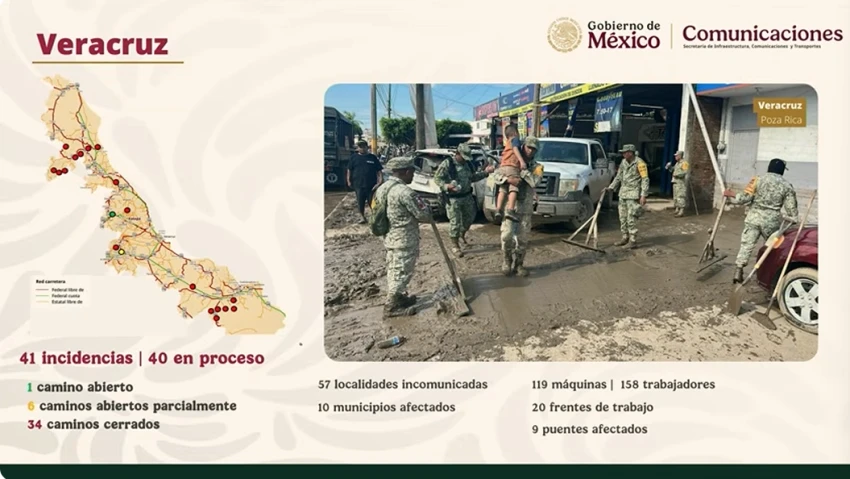 7:44 | Jesús Esteva, titular de la Secretaría de Infraestructura, Comunicaciones y Transportes, da a conocer los avances en restablecimiento de carreteras tras las inundaciones en cinco estados.