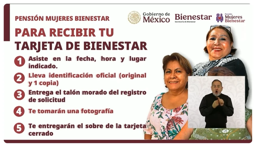 Indicó que si la beneficiaria no puede acudir, que lo informe a la Secretaría del Bienestar para que personal de la dependencia acuda a entregar la tarjeta.