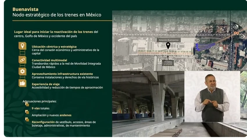 Dijo que en la estación Buenavista es clave para los trenes, ya que se aprovecha la infraestructura existente, se ampliarán andenes.