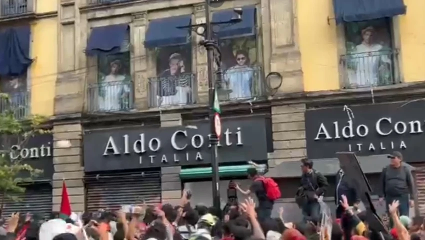 Lo mismo ocurrió con otros negocios como Tiendas 3B, Starbuckse incluso lograron quebrar los cristales del Banco de México, a pesar de que se encontraba blindado con unas vallas de seguridad para evitar que hicieran pintas en el recinto.