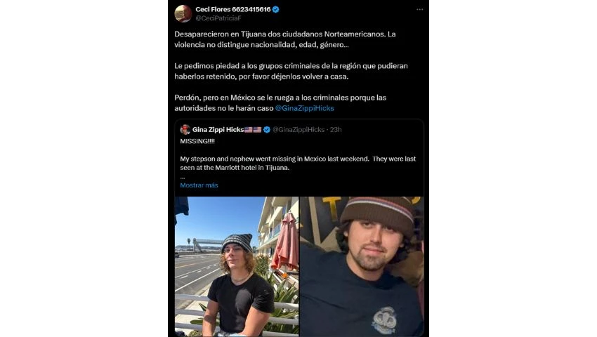 El caso rápidamente llamó la atención de colectivos de búsqueda en México. Ceci Flores, activista y fundadora de un colectivo de madres buscadoras en Sonora, así como agrupaciones en Baja California, compartieron la alerta en redes sociales, exigiendo acciones inmediatas para su localización.