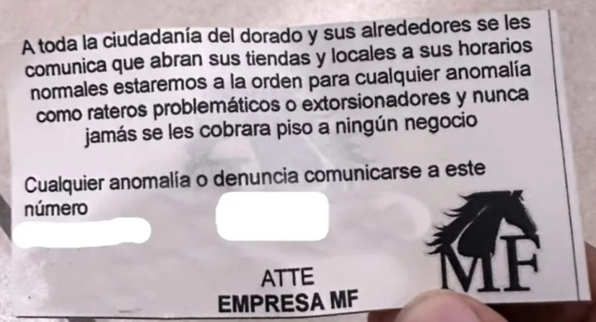 La imagen de uno de los volantes circuló por grupos de WhatsApp de Culiacán, en los que se pide a la población reactivar la economía, además de asegurar que los cobros de piso se han acabado. Según el medio Infobae México, los comercios se arrojaron en locales y comercios de Eldorado.