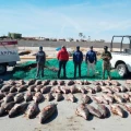 En la acción, personal de la Semar y de Aduanas vaciaron y pesaron la carga, además de identificar y separar por especie las aletas de tiburón encontradas.