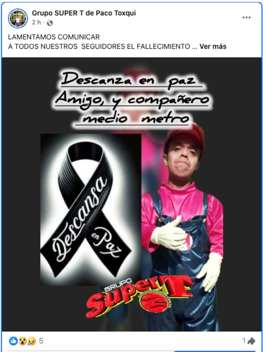 El conjunto sonidero Grupo SUPER T, fue uno de los que confirmó el deceso de Pancho Pérez al que dedicó un mensaje expresando su solidaridad con la familia del famoso bailarín que era un referente de los bailes sonideros.