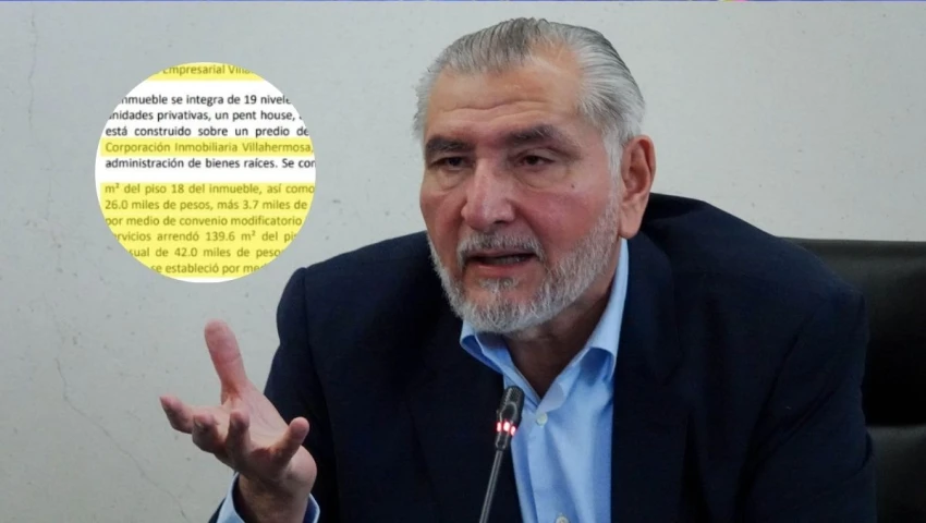 En conjunto, Pemex pagó 2.3 millones de pesos a la Torre Empresarial Villahermosa propiedad de Adán Augusto López.