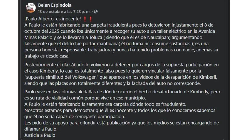 Han pasado 14 días desde que Kimberly Hilary Moya González, estudiante del CCH Naucalpan, fue vista por última vez caminando por la calle Filomeno Mata de Naucalpan, Estado de México, y aún no hay rastro de ella. Aunque la Fiscalía mexiquense detuvo a dos hombres presuntamente involucrados, su familia sigue en la desesperación: