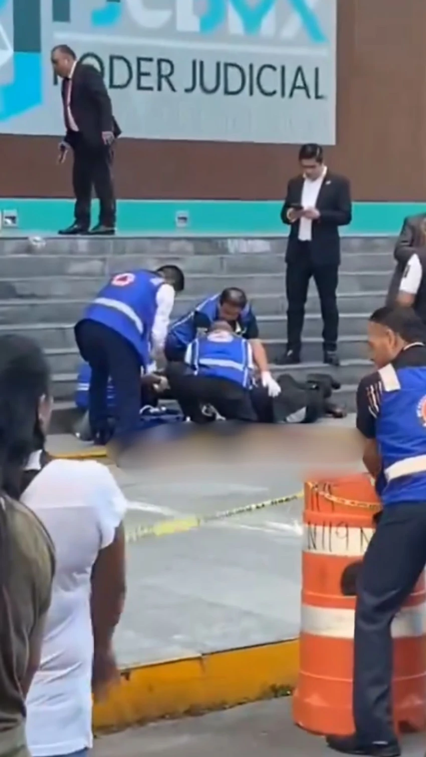Testigos grabaron el momento posterior al ataque. En los videos se observan manchas de sangre en las escaleras de acceso al inmueble y a personal de Protección Civil atendiendo al herido. “Es un abogado, trae traje”, se escucha decir a una persona en una de las grabaciones.