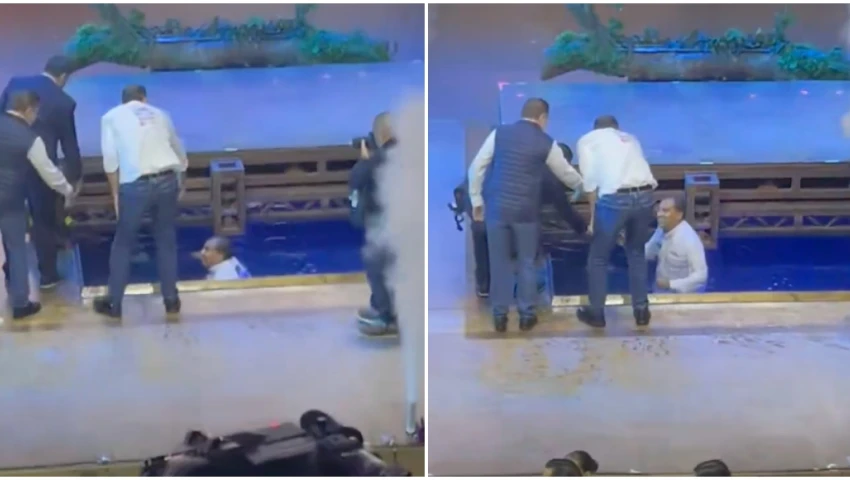 Durante el evento de relanzamiento del Partido Acción Nacional (PAN), celebrado el 18 de octubre en el Frontón México Centro de Entretenimiento, un incidente inusual interrumpió momentáneamente la ceremonia. Maximiliano Cortázar, exvocero presidencial y actual militante panista, terminó completamente empapado tras caer de manera accidental a una pileta de agua que formaba parte del escenario.